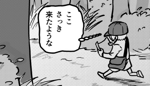男の子が山に探検、迷子になって、噂の怖い斧男に出会った